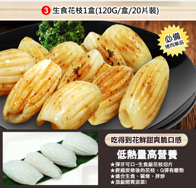 (3) 生食花枝1盒(120g/盒/20片裝)