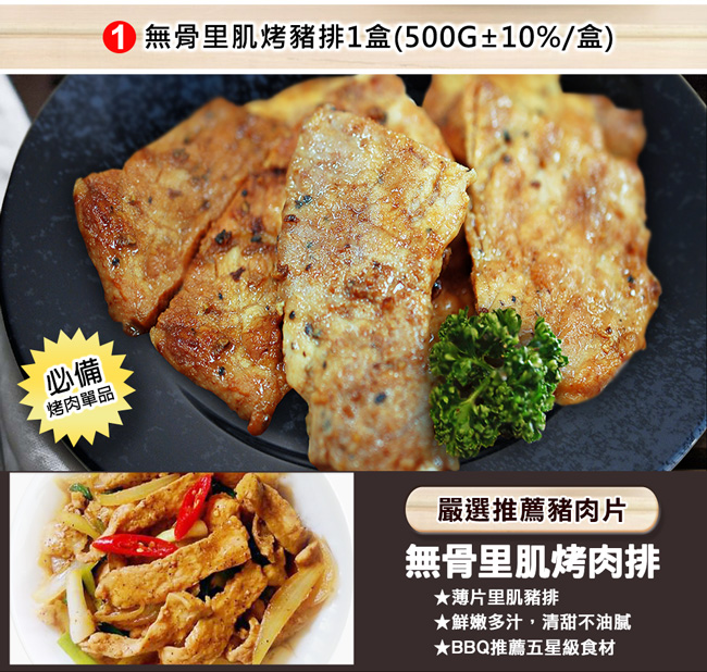 (1) 無骨里肌烤豬排1盒(500g±10%/盒)