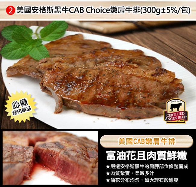 (1) 美國安格斯黑牛CAB Choice嫩肩牛排1包(300g±5%/包)