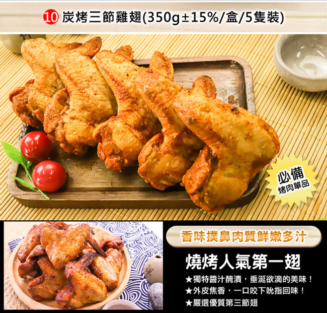 (6) 炭烤三節雞翅1盒(350g±15%/盒/5隻裝)