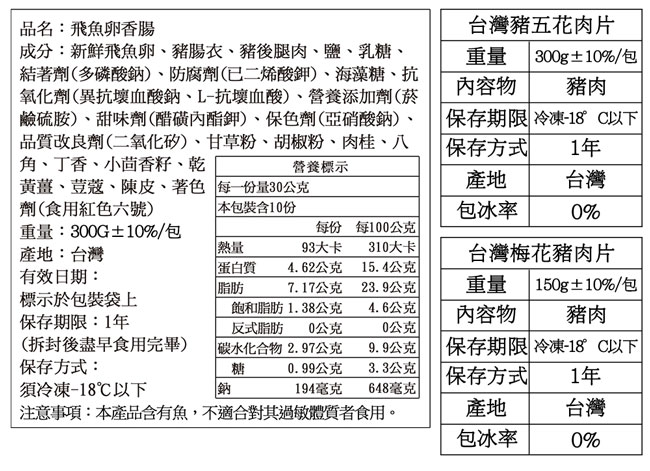(7) 飛魚卵香腸1包(300g±10%/包)