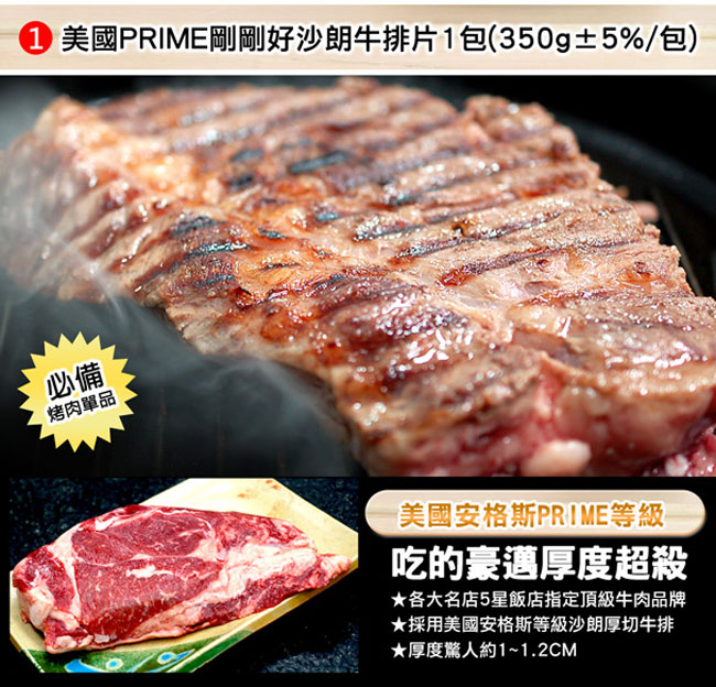 (2) 美國安格斯PRIME沙朗牛排片1包(350g±5%/包)