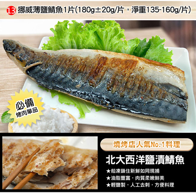 (12)挪威薄鹽鯖魚1片(180g±20g/片,淨重約135-160g)