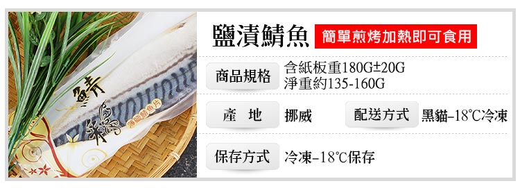 .商品名稱:油質豐厚挪威薄鹽鯖魚1片(約180g/片)-任選