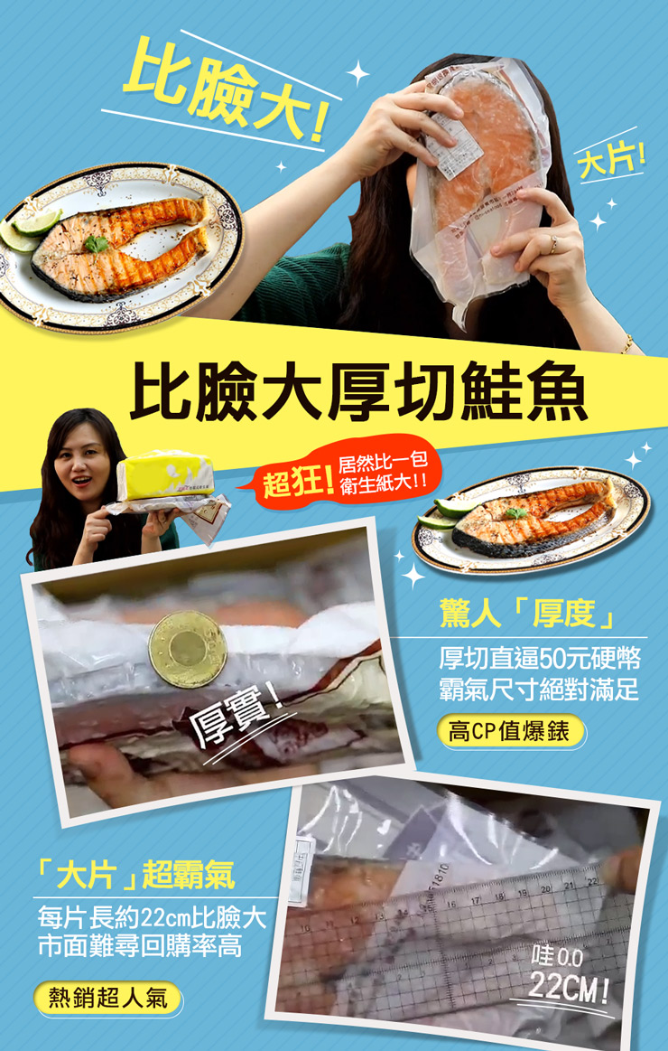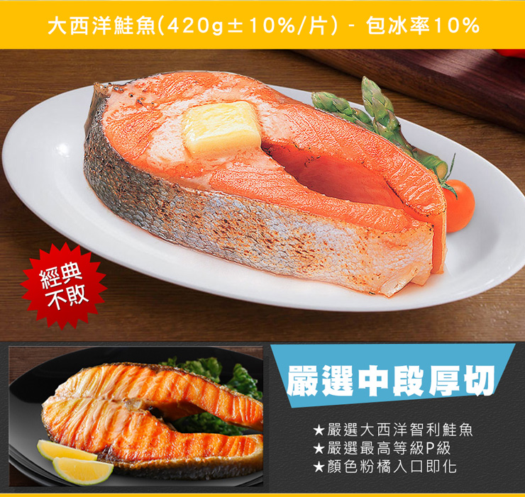 .商品名稱:海味雙寶-特大版雙拼6片組(去刺虱目魚肚3片+厚切鮭魚3片)免運