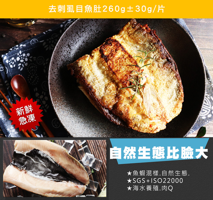 ★虱目魚肚:魚蝦混樣.自然生態.海水養殖.、SGS+ISO22000