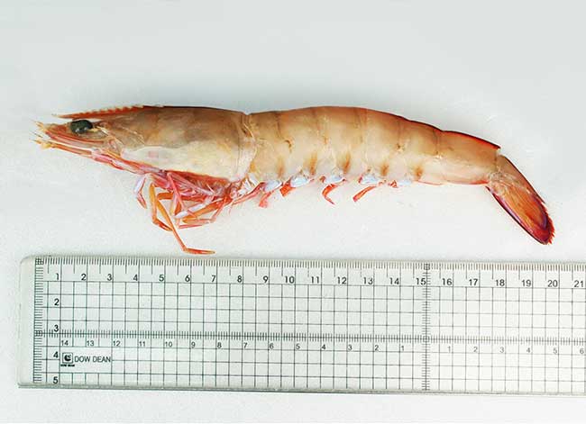 外觀:蝦殼粉紅帶橙,尾部顏色鮮明是台灣俗稱紅刺蝦