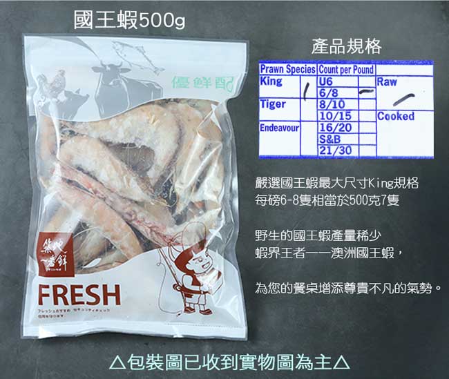 .商品名稱:澳洲大堡礁|野生|國王蝦500g |2盒|約7尾 免運