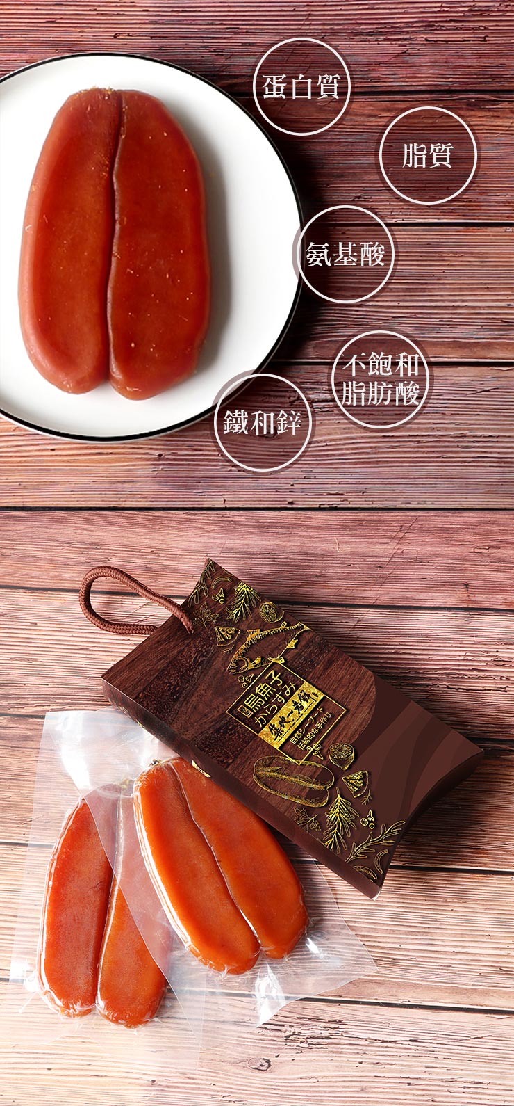 .商品名稱:嚴選口湖頭等獎野生烏魚子4兩x2片禮盒組(150g/片)