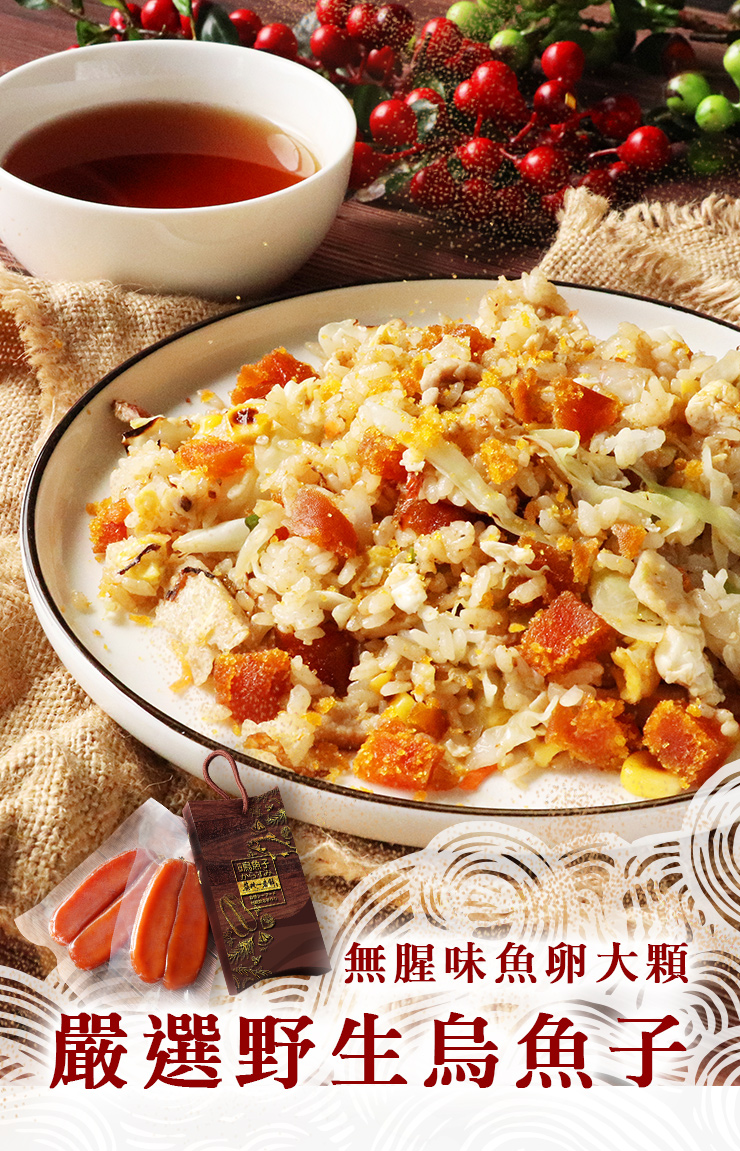嚴選野生特大烏魚子,採用傳統日曬法製作低鹽、天然日曬