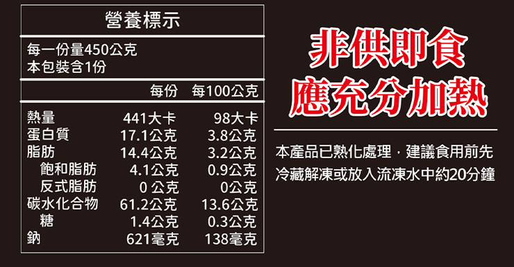 .保存方式:請置於-18℃冷凍保存(一般家庭冰箱,冷凍僅約-18°C,建議購買後盡早食用。有別於業務型-24°C冷凍設備條件,將無法長期儲存。)