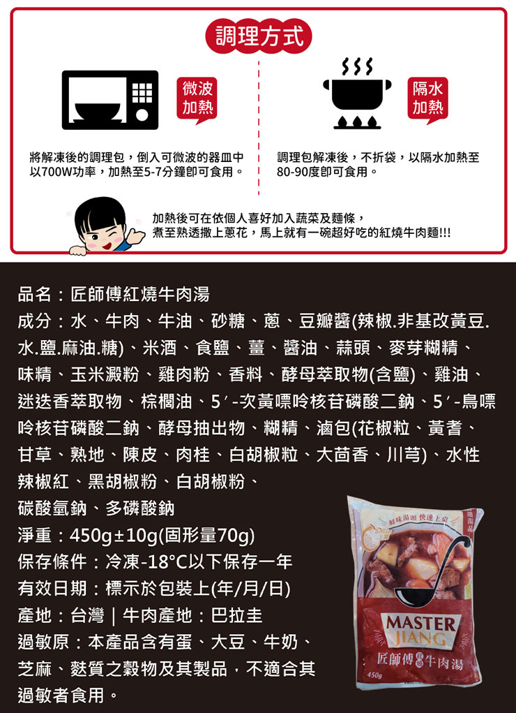.商品名稱:紅燒牛肉湯5包(450g/包,加贈日式烏龍麵/拉麵任選)