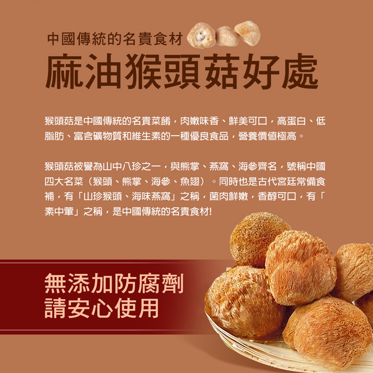 .內容物名稱:麻油猴頭菇