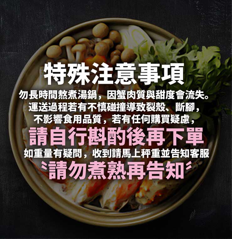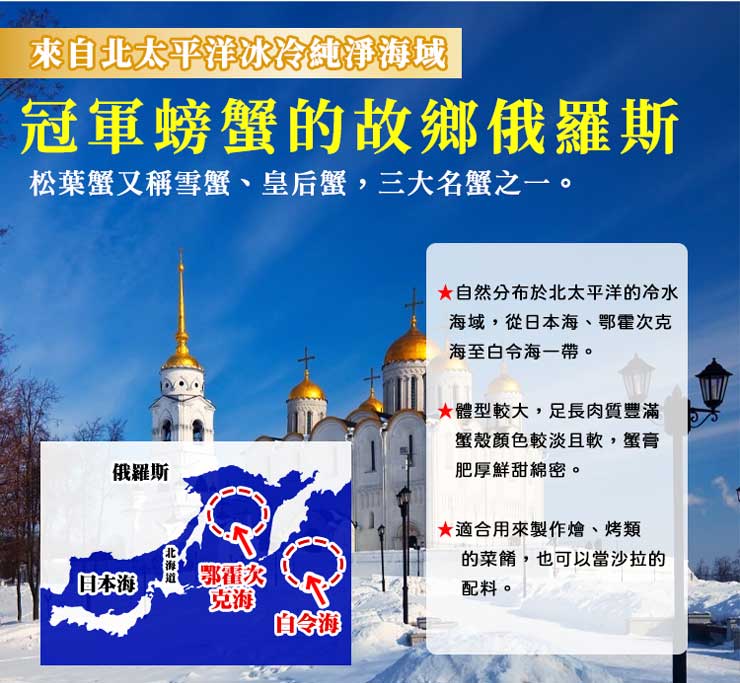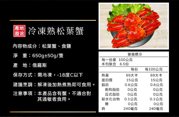 .商品名稱:俄羅斯(熟)松葉蟹1整隻(650G/隻)