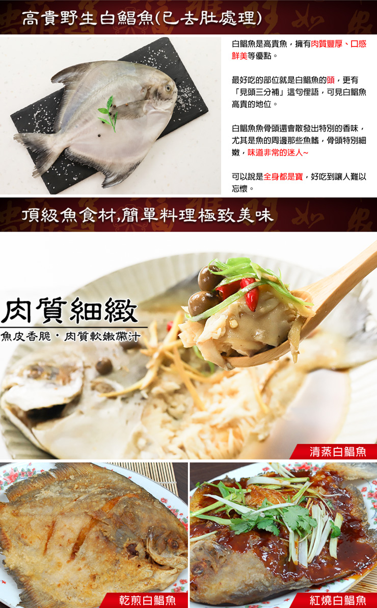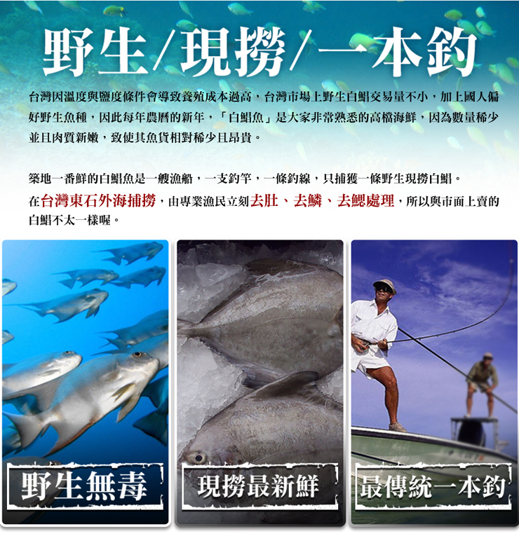 ‧●商品名稱:野生一本釣白鯧魚(約500g/尾)_任選