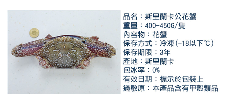 .商品名稱:XL斯里蘭卡公花蟹4隻(400UPg/隻)