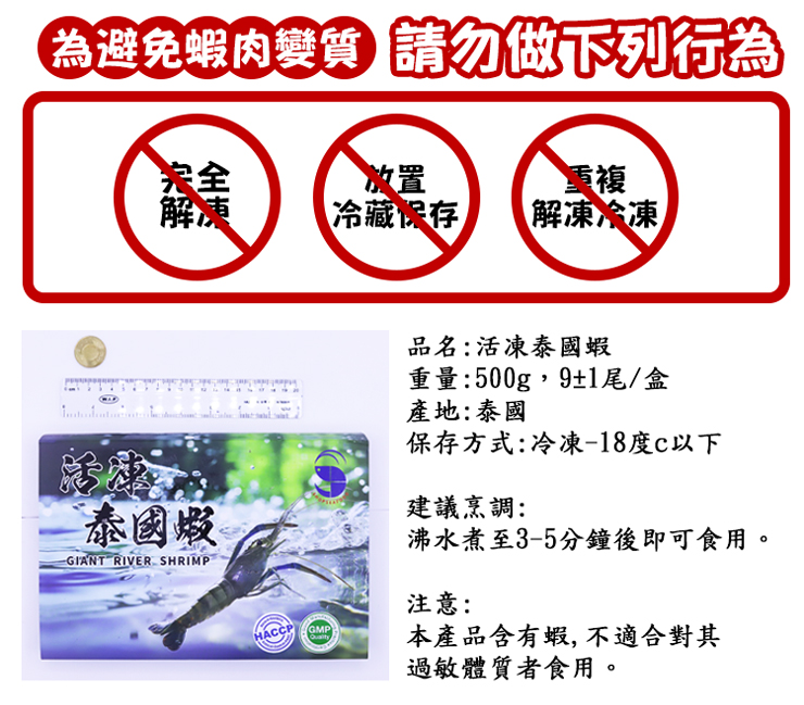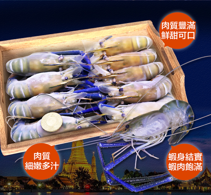 .商品名稱:活凍泰國蝦(公)1盒(500g/盒/9尾)-任選