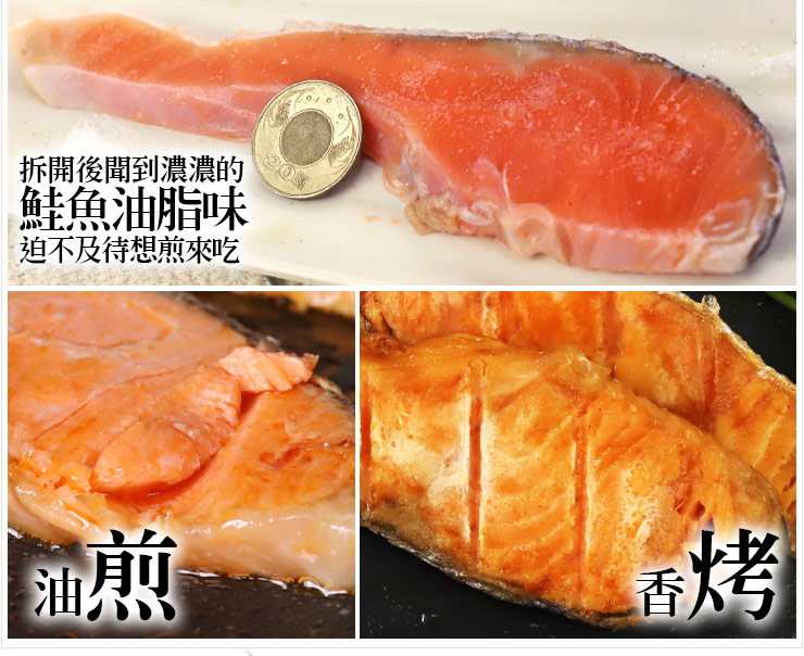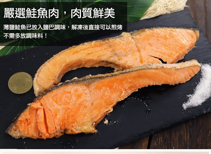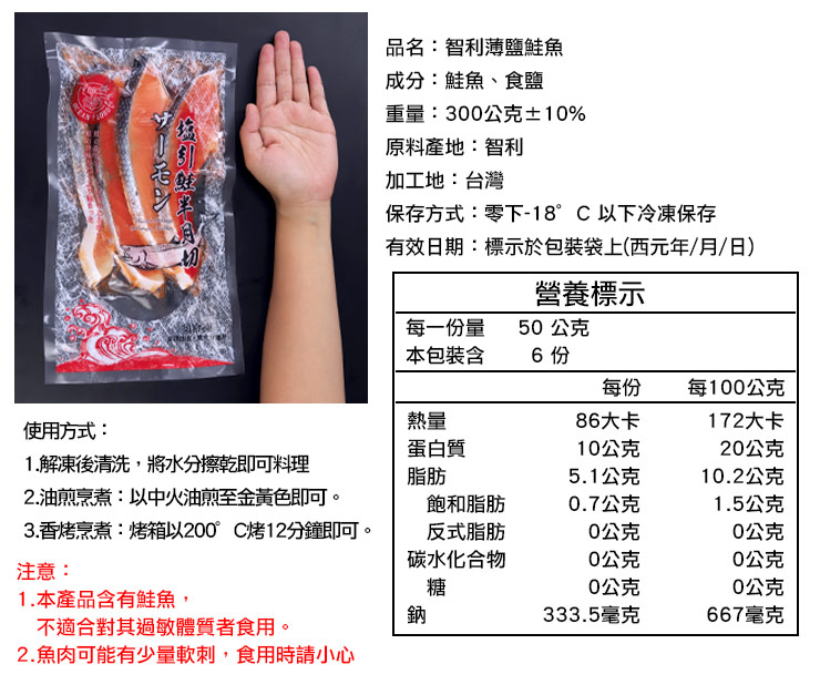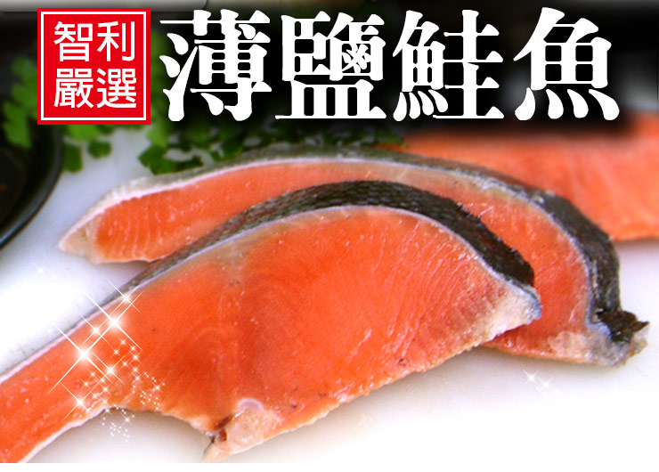 ‧●商品名稱: 智利薄鹽鮭魚4包(300g/4片裝/包)
