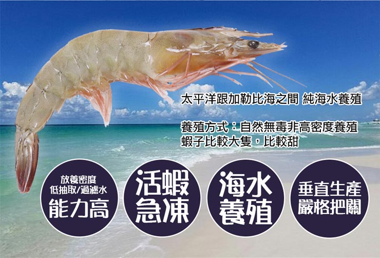 ‧●商品名稱:特大巴拿馬活凍白蝦(淨重650g/盒/27尾)-任選