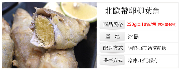.商品名稱:北歐帶卵柳葉魚10包(約250g/包)